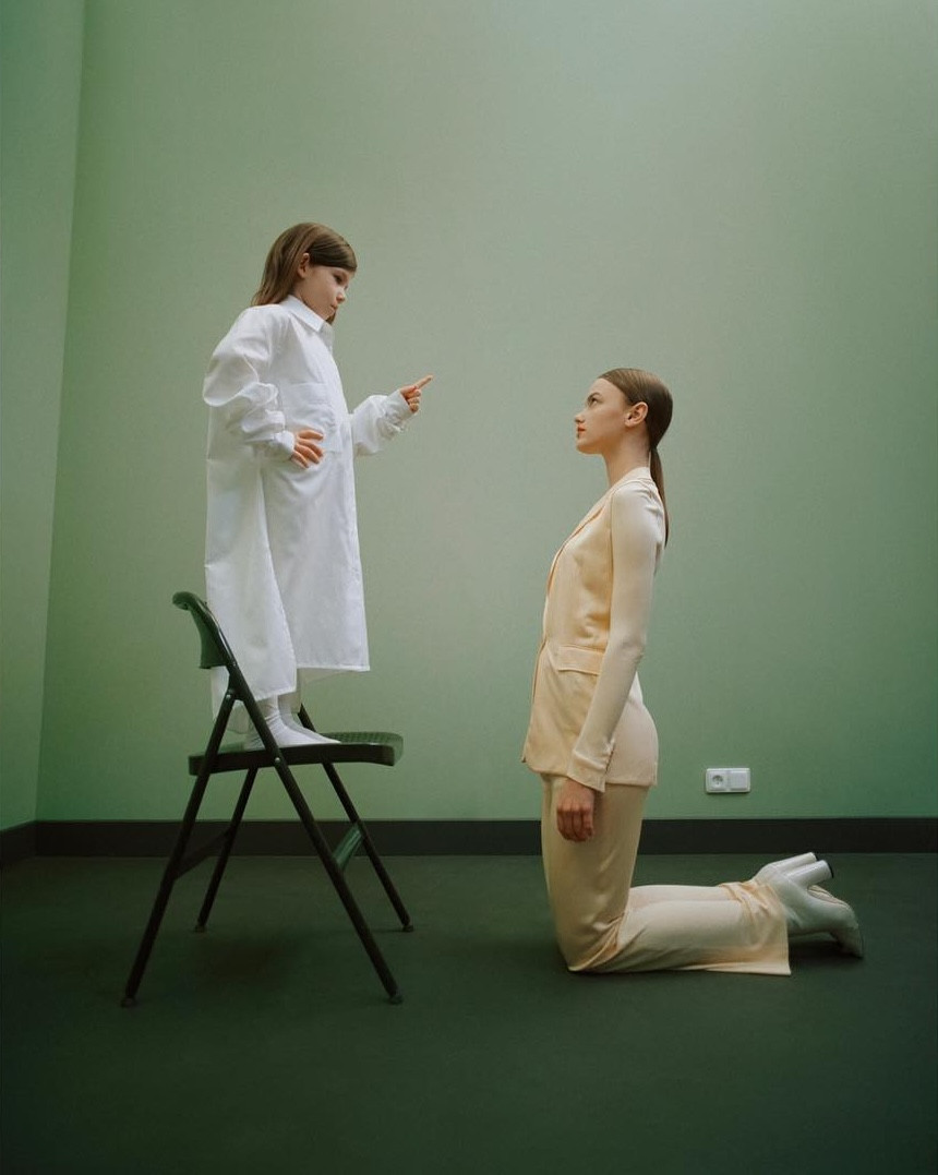 Michalov začiatok fotografickej kariéry bol rýchly, intuitívny, ale zároveň vizionársky. Jeho cieľ bol jasný od začiatku – cez estetiku rozprávať o spoločnosti. „Používam módu ako nástroj. Viem, že pekné dievčatá a gýčové kompozície pritiahnu pozornosť, a ja to využívam. Skupinová fotka sa stala môj nástroj na komentovanie konzumu a uniformity.“ Z detskej posadnutosti kreslením sa stal tvorca obrazov, ktoré obleteli svet – a ktoré nikdy nezabudli, odkiaľ prišli. Ak by sme mali Michala predstaviť jazykom kurátora, mohli by sme jeho tvorbu opísať ako symbiotické prepojenie módnej fotografie, konceptuálneho umenia a spoločenského komentára. Jeho obrazy sú vystavané ako filmové scény – s jasnou dramaturgiou, detailnou kompozíciou a choreografiou postáv, ktoré nie sú len modelkami, ale nositeľkami významov. Michal pracuje najradšej s analógovou fotografiou. Jeho technika je precízna, ale nie sterilná – práve naopak. V každom zábere je cítiť emocionalitu, osobnú angažovanosť a zámer. „Mňa technická stránka fotenia vôbec nezaujíma. Mám retušérov, mám asistentov. Mňa baví vymýšľať, tvoriť, komponovať,“ priznáva.
