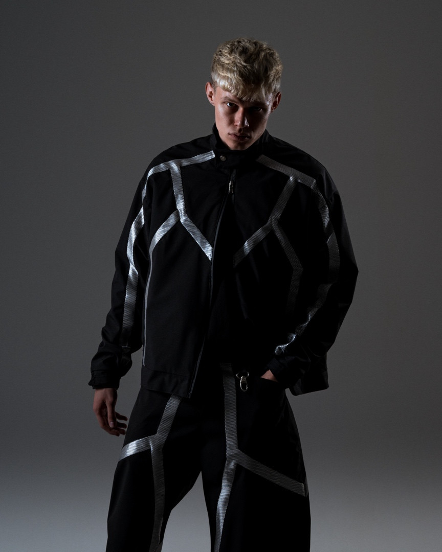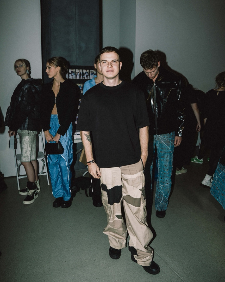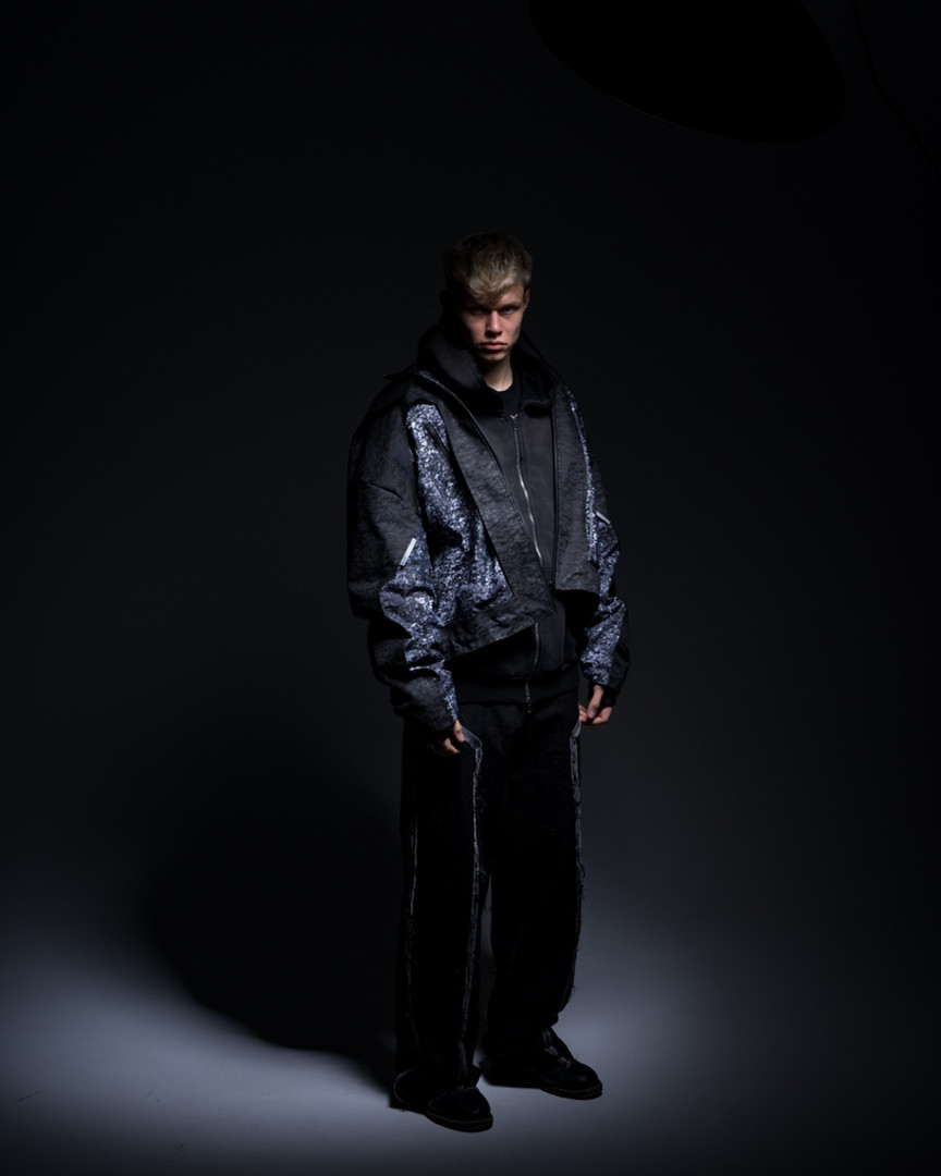 Na škole sa Jakub našiel. Pracoval so železnými pilinami, vytváral si vlastné reaktívne farby, ktoré oxidovali priamo na látke. Jeho práca mala už vtedy silný vizuálny aj konceptuálny základ – skúmal, ako sa dá textil „zarchitektonizovať“, ako vie oblečenie niesť atmosféru priestoru. „Milujem brutalizmus. Ale nie len tak pre vizuál. Fascinuje ma, ako tie stavby komunikujú so svojím okolím, ako pôsobia na ľudí. A presne to chcem prenášať aj do módy.“ Už počas školy si prešiel aj konfrontáciou s reálnym módnym svetom. Robil internship pre Icy Kofa, známu osobnosť londýnskeho streetwearu, ktorá ho oslovila priamo cez Instagram. „To bolo trochu jak film – napíše ti niekto, koho sleduješ, a zrazu robíš jeho vzory. Vtedy som si uvedomil, že je rozdiel medzi školským dizajnom a reálnym biznisom. Tam ide o rýchlosť, o budget, o efekt.“ Jakub to však nevnímal ako stratu ilúzii, ale ako ďalší krok k samostatnosti. Začiatky Jakubovej dráhy sú kombináciou pozornosti k svetu okolo seba, technického experimentovania a výtvarného cítenia. To všetko zakorenené v silnom pocite estetiky verejného priestoru a každodennosti. Odev ako architektúra tela, móda ako emočný priestor – to sú pojmy, ktoré sa v jeho tvorbe začínajú objavovať už v tejto etape života.