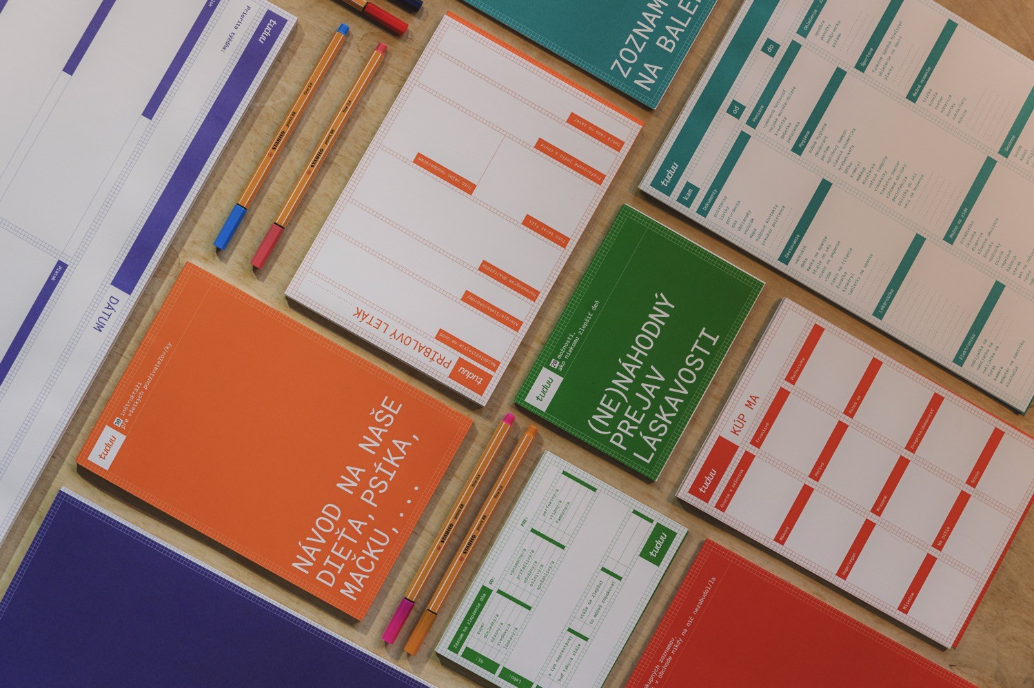 Čo je Tuduu? Tuduu je pomocník na každodenný život. S Tuduu už nikdy nezabudnete čo kúpiť, zbaliť alebo niekoho len tak potešiť. Do Tuduu trhacích blokov si zaznačte všetko, čo potrebujete. Vzniklo, lebo ich autorov Terinu a Mateja už nebavilo sťahovať a párovať aplikácie, strácať papieriky a zabúdať na to podstatné. Písanie rukou nie je mŕtve! Tuduu organizéry uľahčujú každodenné plánovanie, spríjemnia všedné záležitosti či pomôžu zlepšiť deň tým okolo nás. V Tuduu portfóliu nájdeme: