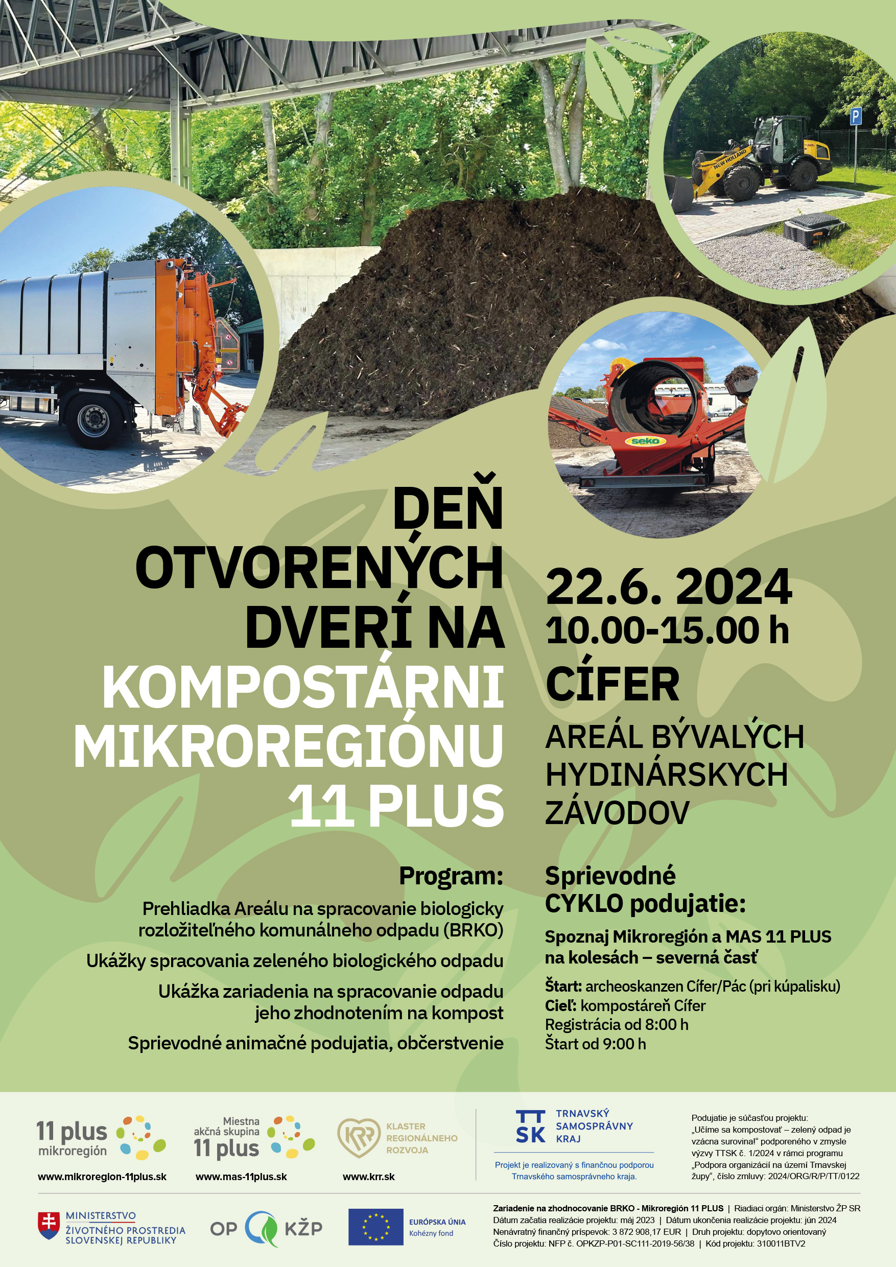 Pozývame Vás pozrieť si zaujímavý areál na spracovanie biologicky rozložiteľného komunálneho odpadu v Cíferi, ktorý vybudoval Mikroregión 11 PLUS.Aktivity sa môžete zúčastniť 22.6.2024 v čase