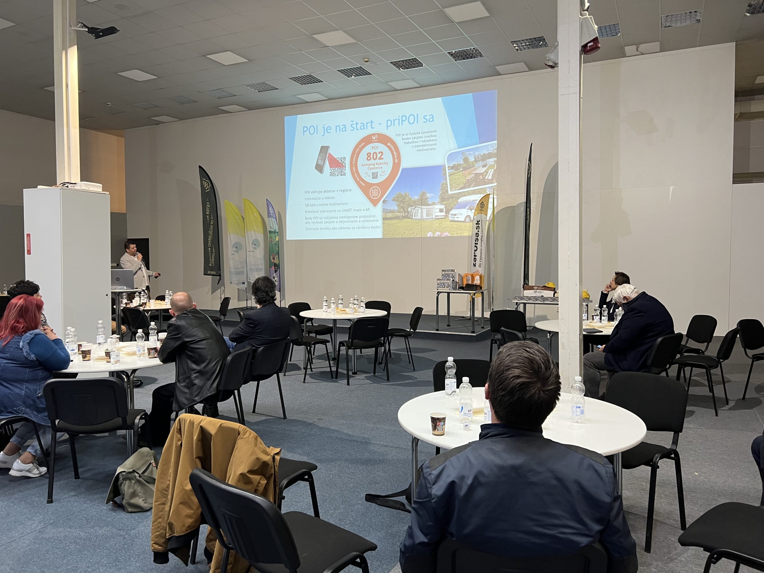 Na kontraktačno-predajnom veľtrhu Caravan, Bike, Tourist, ktorý sa konal 7.4-10.4.2022 v Nitre sme odprezentovali okrem iného aj iniciatívu zaPOIsa.sk. Projekt predstavil jeden z jeho iniciátorov Martin Červenka, starosta obce Ratkovce. Na úvod spoločného stretnutia s podporovateľmi iniciatívy zaPOIsa.sk, ktorí sú z radov starostov a podnikateľov sa prítomným prihovoril Maroš Sagan, starosta obce Cífer a predseda Regionálneho ZMO JE Jaslovské Bohunice. Na účel tohto výnimočného seminára mal Klaster regionálneho rozvoja (KRR) prenajaté kongresové centrum v Hale K na výstavisku Agrokomplex, kde sa konal veľtrh a kde KRR okrem toho vystavoval aj v HALE A spolu s GoSlovakia/GoCamping a ďalšími vystavovateľmi z oblasti cestovného ruchu a turizmu, inovatívnych regionálnych riešení a zaujímavostí zo sveta kempingu a karavaningu. Využijúc stretnutie s takto širokou účasťou – viac ako 70 starostov a primátorov a niekoľko desiatok podnikateľov predstavil KRR aj iné projekty, ktoré realizuje. Okrem iného projekt “Podpora sieťovania podnikov k KRR”, ale značná časť stretnutia bola venovaná aj projektu “Regionálneho centra obehového hospodárstva”, kde vystúpili odborníci na integrované územné stratégie, či smart riešenia. Prezentované boli aj medzinárodné projekty Flexitour a Maximus realizované v schéme ERASMUS + ale aj projekt InCOOP v schéme Európa pre občanov. Bol zrealizované aj predstavenie knižnej publikácie “STOPY MINULOSTI”, ktoré KRR vydal v rámci projektu “Digitalizácia ako nástroj udržateľného regionálneho rozvoja. V priebehu informačného a vzdelávacieho seminára vystúpili ďalší starostovia a odborníci z oblasti samosprávy, regionálneho rozvoja a inovácií. Okrem iného nás prišiel podporiť svojím vstupom aj Michal Kaliňák, ústredný riaditeľ kancelárie ZMO Slovensko. Na náš seminár “zablúdil” aj Peter Klučka, národný cyklo koordinátor, ktorý neskôr vystúpil v Hale A so svojou prednáškou ale v krátkosti sa prihovoril aj účastníkom nášho stretnutia. Témy a aktivity projektu zaPOIsa.sk predstavil aj riaditeľ KRR Marek Turanský. Zaujímavosťou projektu je animačný trabant, ktorý zaujal mnohých návštevníkov veľtrhu a bude určite celkom pekným oživením ďalších podujatí vo formáte zaPOIsa.