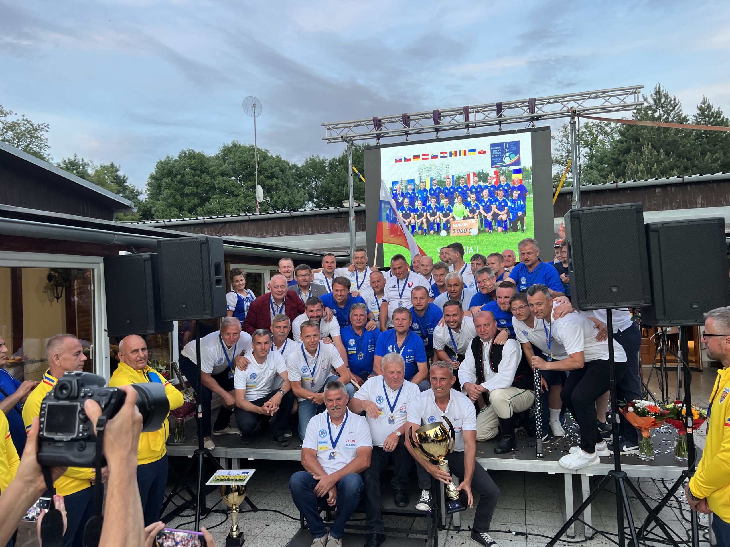 “Toto ste tu ešte nemali” spievali slovenskí starostovia po hvizde rozhodcu, ktorý ukončil finálový zápas medzi Slovenskom a Rumunskom. Zápasy plné emócií, ale v znamení fair play podporovali počas celého turnaja vytrvalo fanúšikovia, najmä z radov súčasných ale aj mnohých bývalých starostov zo Slovenska a členovia zahraničných tímov, ktorí prišli povzbudiť futbalové mužstvá starostov z Českej republiky, Rakúska, Nemecka, Južného Tirolska, Moldavska, Rumunska, Slovinska a Chorvátska. Turnaj sa hral v troch skupinách, za Slovensko a Česko nastúpili po dva tímy. V nasledujúcich tabuľkách Vám prinášame prehľad skupín a zápasov s ich výsledkami a potom niekoľko fotografií.