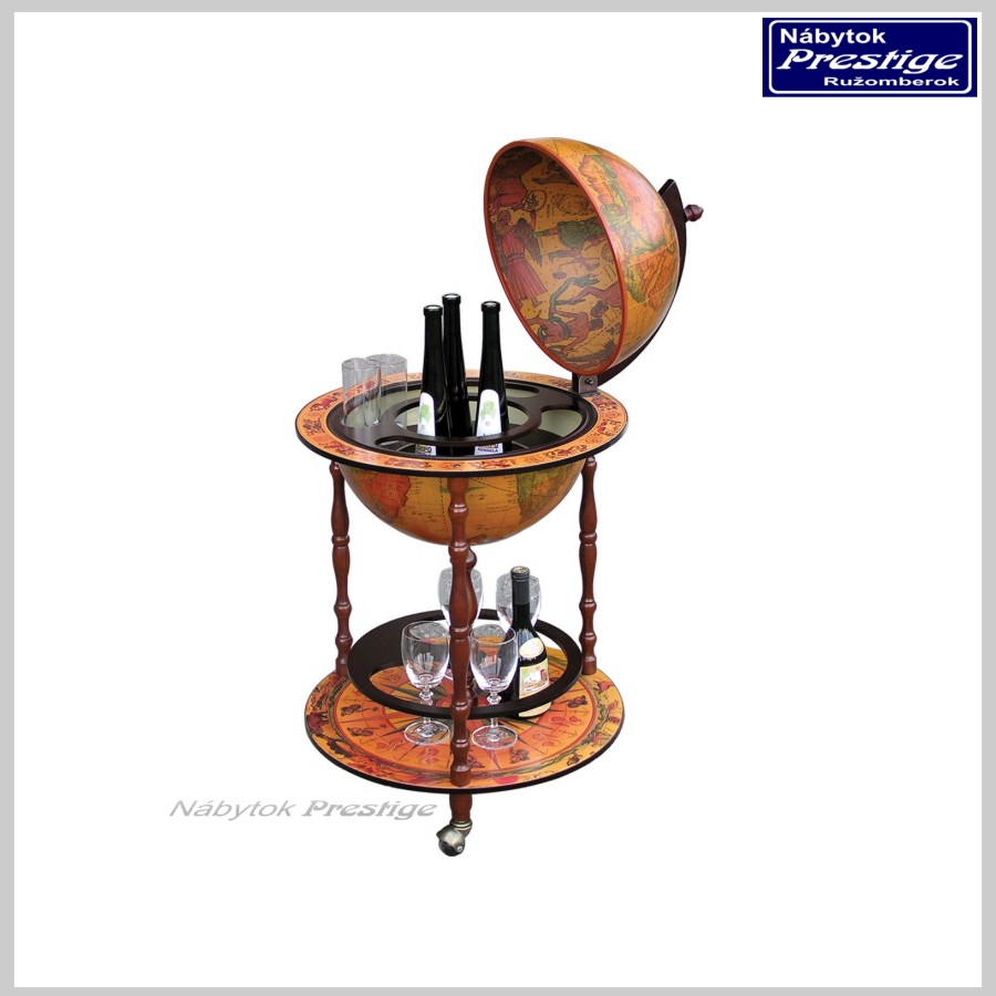 Prevedenie-materiál: drevo čerešňa, MDF, plast, priemer glóbusu: 50 cm, výška stolika 94 cm, dodávaný v demonte.