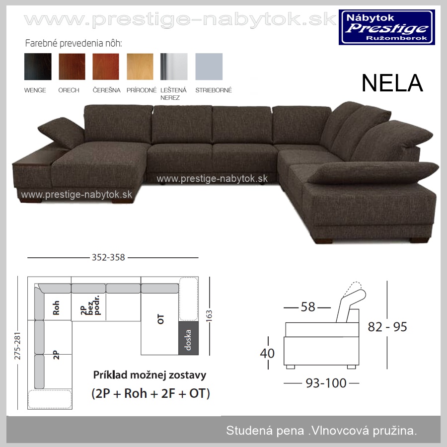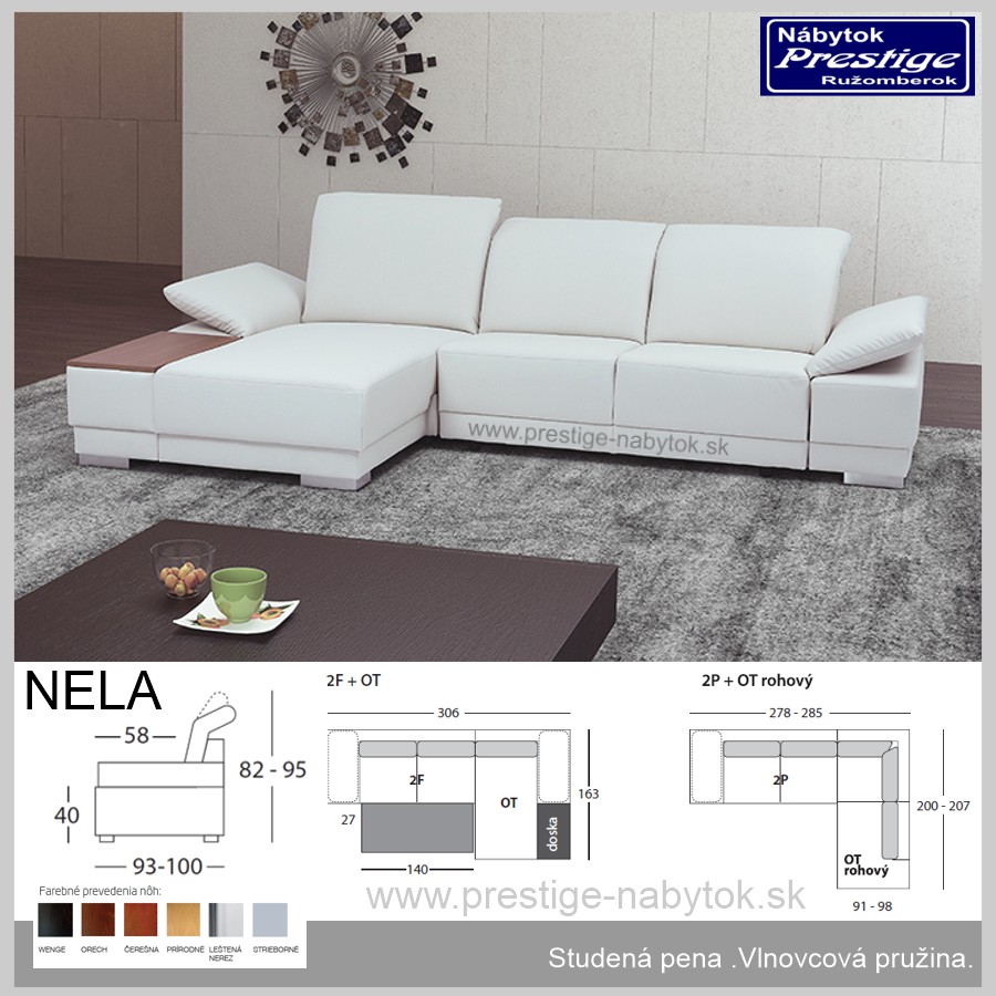 Nohy môžu byť prevedené v odtieni: WENGE ,ORECH, ČEREŠNA ,PRÍRODNÉ LEŠTENÁ ,STRIEBORNÁ NEREZ.