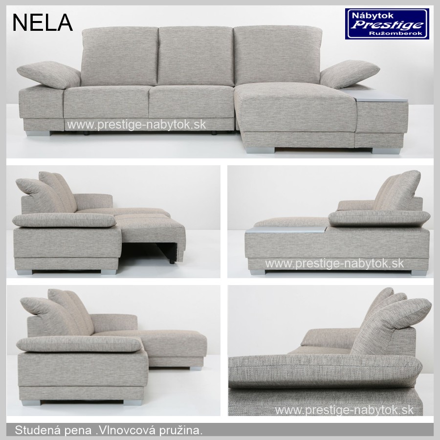 Dá sa zostaviť z dvojpohovky s rozkladaním a s rohovým otomanom v ktorom je úložný priestor. Po rozložení systémom výsuvný vozík vnikne spacia plocha na príležitostné spanie.