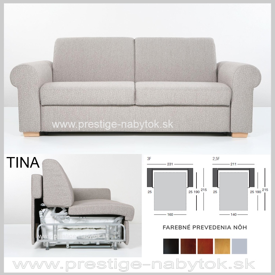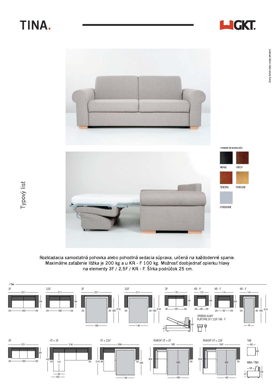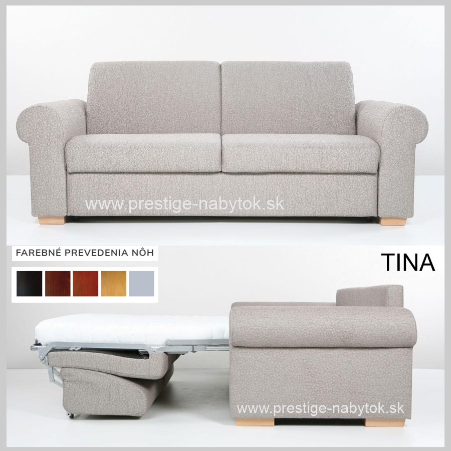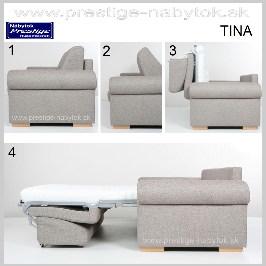 TINA sedacia súprava vyniká výbornou ergonómiou sedenia a jednoduchým spôsobom rozťahovania tzv. AUTOMATOM. Sedačka sa objednáva ako samostatná trojpohovka prípadne 2,5 pohovka v troch šírkových variantoch alebo dva a pol pohovka spojená s otomanom, čím vytvorí rohovú kvalitnú rozkladaciu sedaciu súpravu s úložným priestorom v otomane.