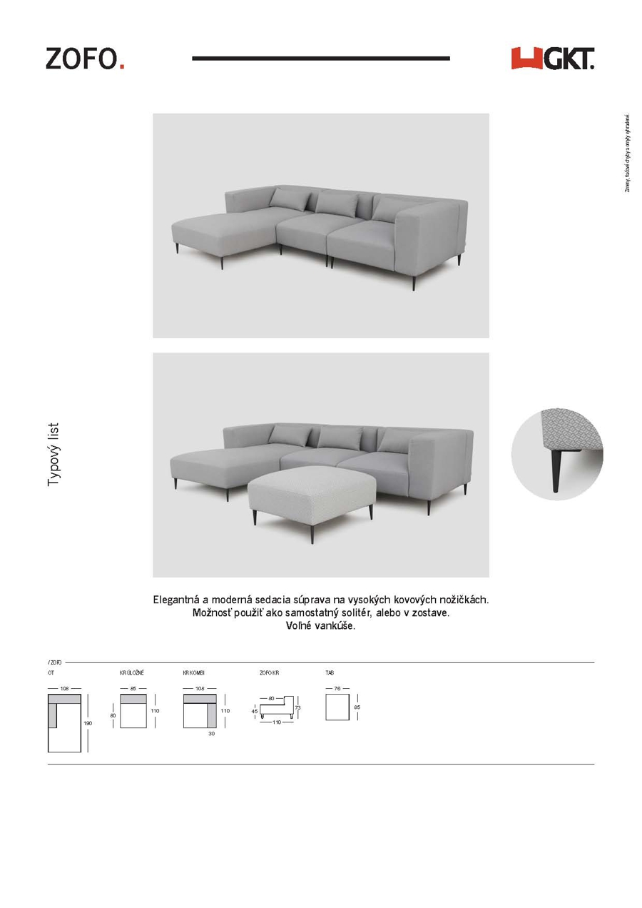 Rozmery sektorových modulov sedačky ZOFO.